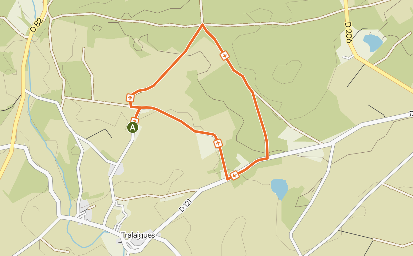 Vertrekkend met de wagen vanuit Villlosanges - je rijdt door Miremont - je ziet het huwelijkstafereel voor je, dan verder de weg volgen tot even buiten het dorp. Aan je linkerkant kan je parkeren. Er staat een bord met de wandeling. Gaat vrij steil op en neer.