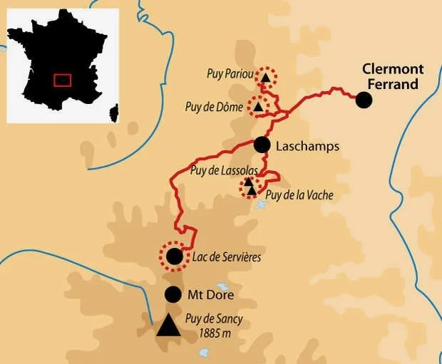 Beklim de Puy de Dôme, met zijn 1465 meter hoogte, de hoogste vulkaan van de bergketen van Les Puys of daal af tot in de navel van Moeder Aarde in Puy de Pariou.